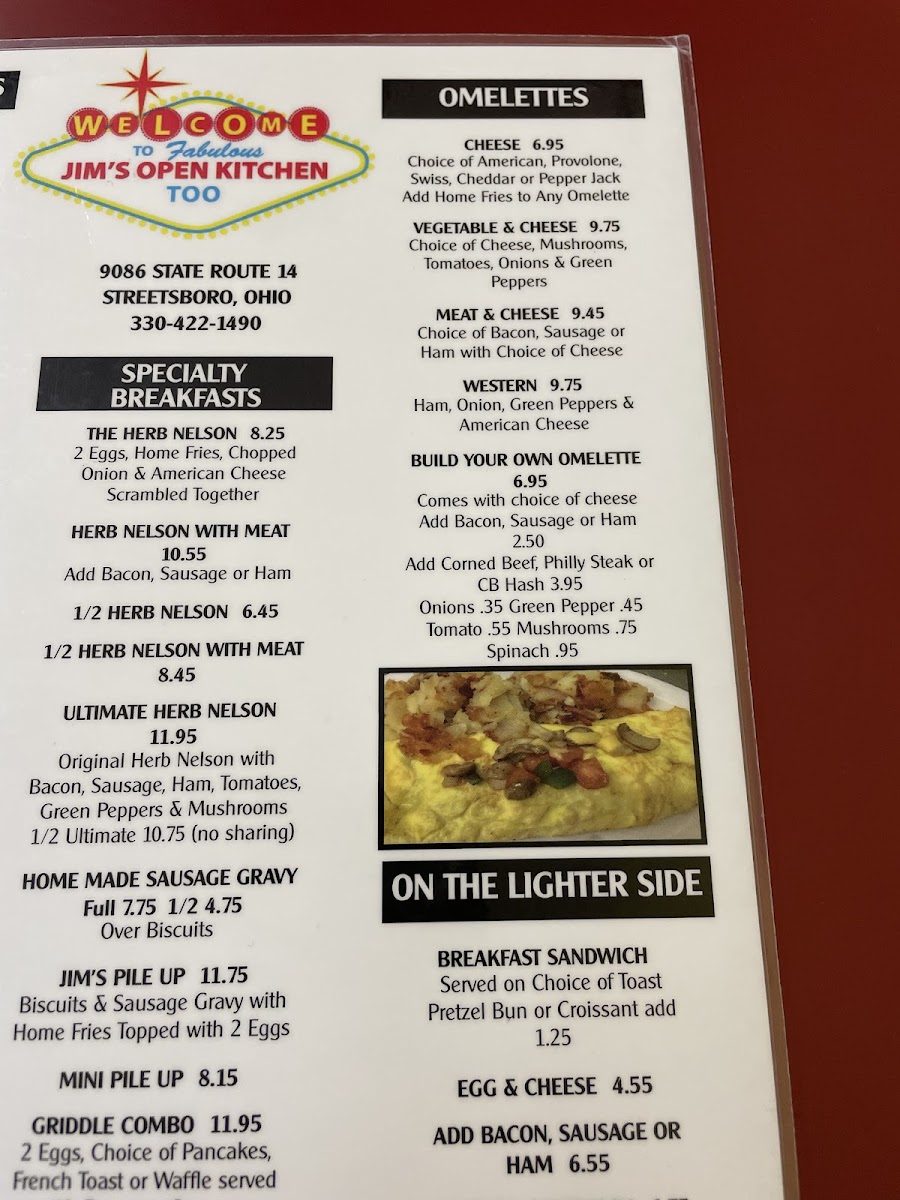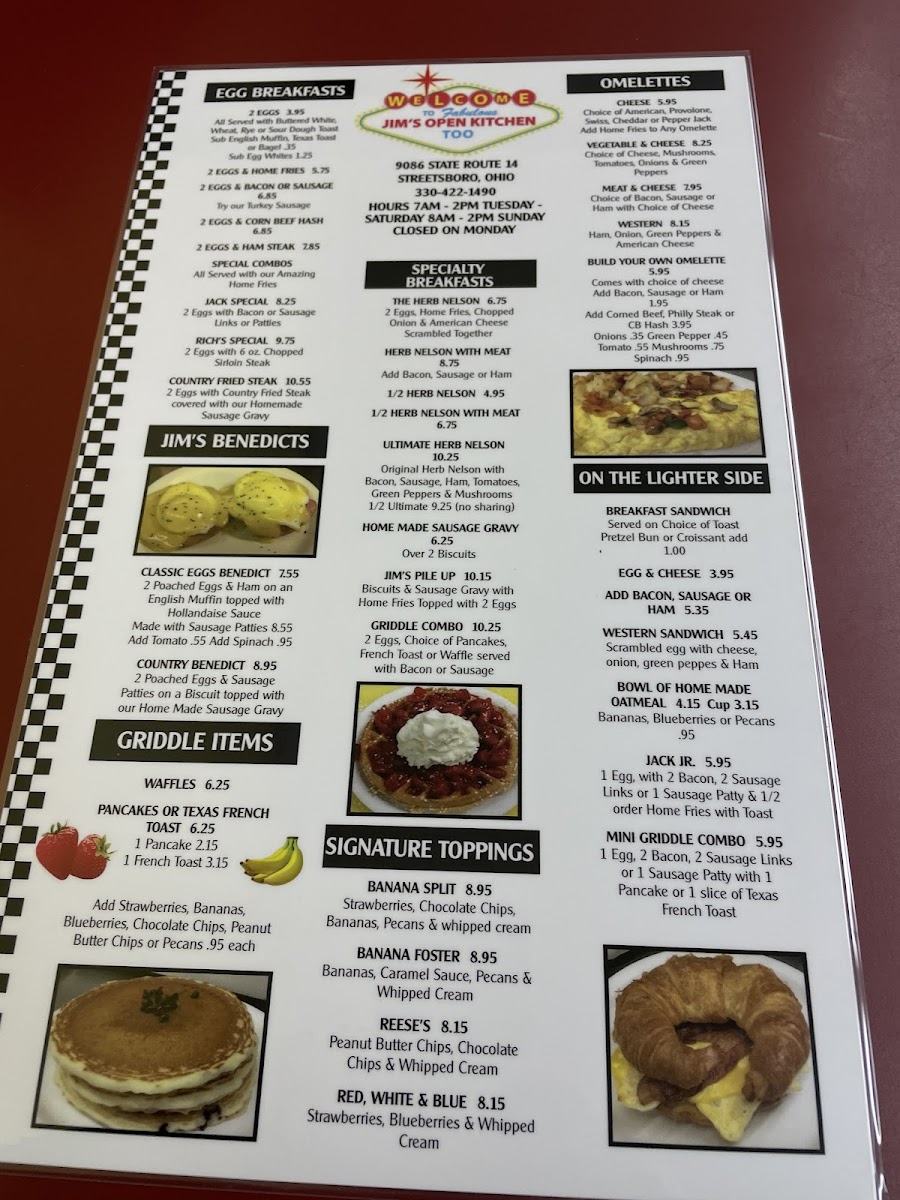 Jim's Open Kitchen Too Menu