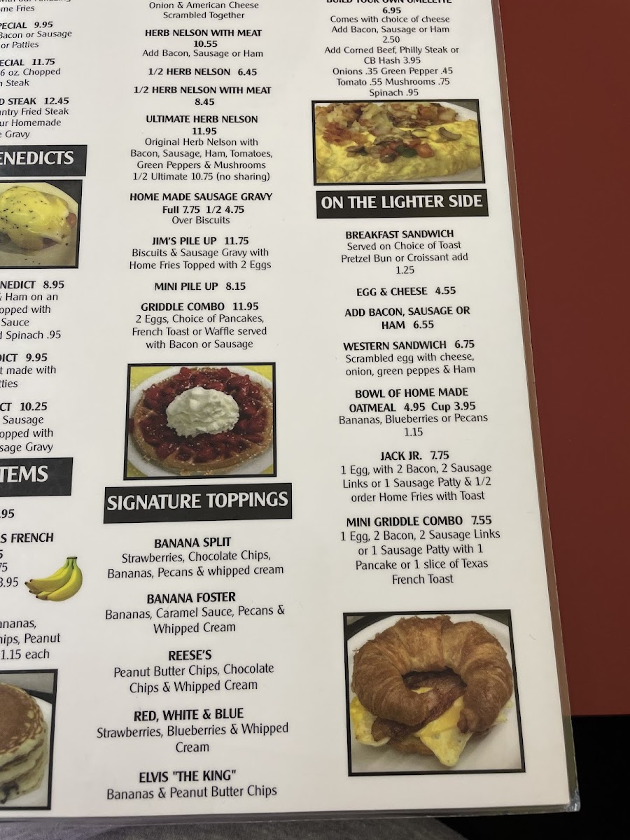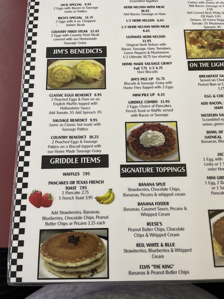 Jim's Open Kitchen Too offers a straightforward and inviting menu, centered around classic diner favorites and comforting breakfast staples. Whether you're stopping by for a morning meal or a casual bite midday, the menu shines with hearty plates like Eggs Benedict, biscuits and gravy, and their signature waffles topped in creative ways, such as the Red White and Blue Waffle or the Banana's Foster Waffle.